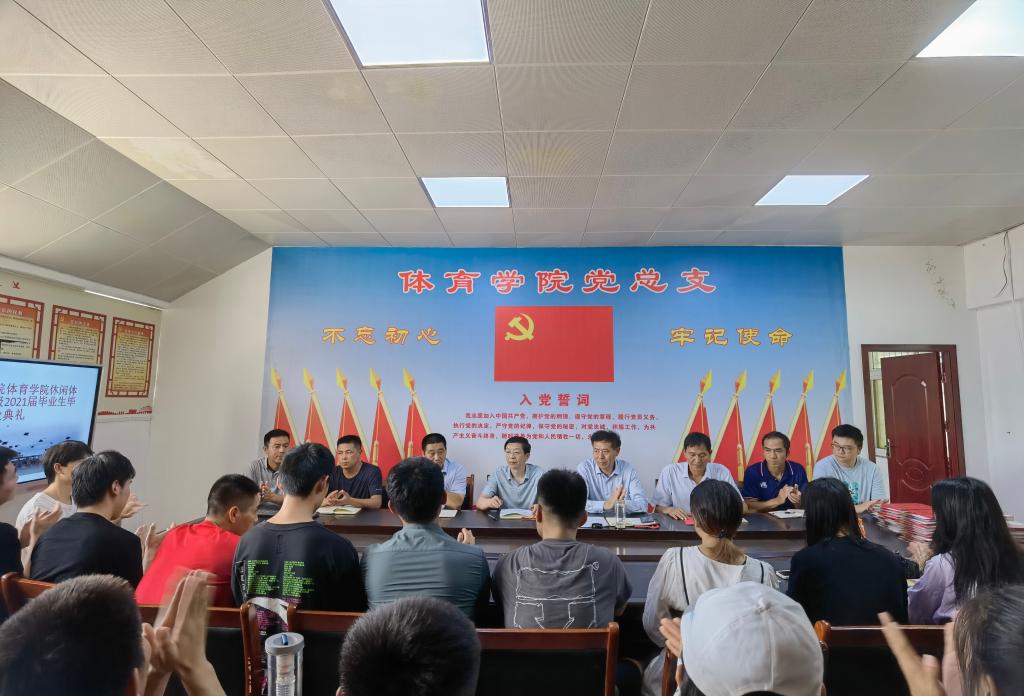 6月10日上午,体育学院休闲体育专业2021届毕业生毕业典礼在学院会议室举行。学院领导班子、教师代表及2021届毕业生参加,典礼由院党总支副书记李远胜主持。