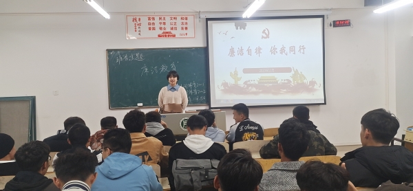 会上,同学们积极讨论身边可能存在的不廉洁现象,结合日后的就业方向,讨论不同职业的廉洁要求。此次活动引导学生树立廉洁诚信、遵纪守法、艰苦奋斗、爱岗敬业的理念,为自觉维护祖国和集体的利益打下坚实基础。