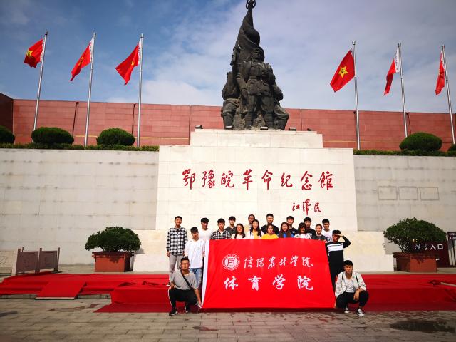 为传承红色革命精神,培育和践行社会主义核心价值观,2019年5月19日上午,体育学院学生党支部书记李远胜老师、辅导员彭浩老师带领休闲体育专业全体学生前往鄂豫皖革命纪念馆,缅怀革命先烈,接受红色教育。