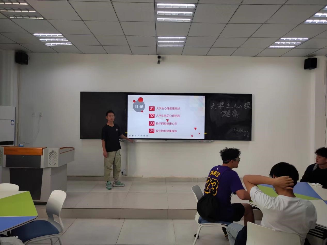 此次班会由体育学院休闲体育20-2班心理委员王金龙主持开展,班会内容分为大学生常见心理问题、教你拥有健康心理、教你拥有健康身体三部分。通过列举各种心理问题的外在表现,便于同学们更加直观的理解和检测。同时还列举出了大学生十大常见心理问题,通过趣味问答的方式引导同学们讨论如何解决常见心理问题。