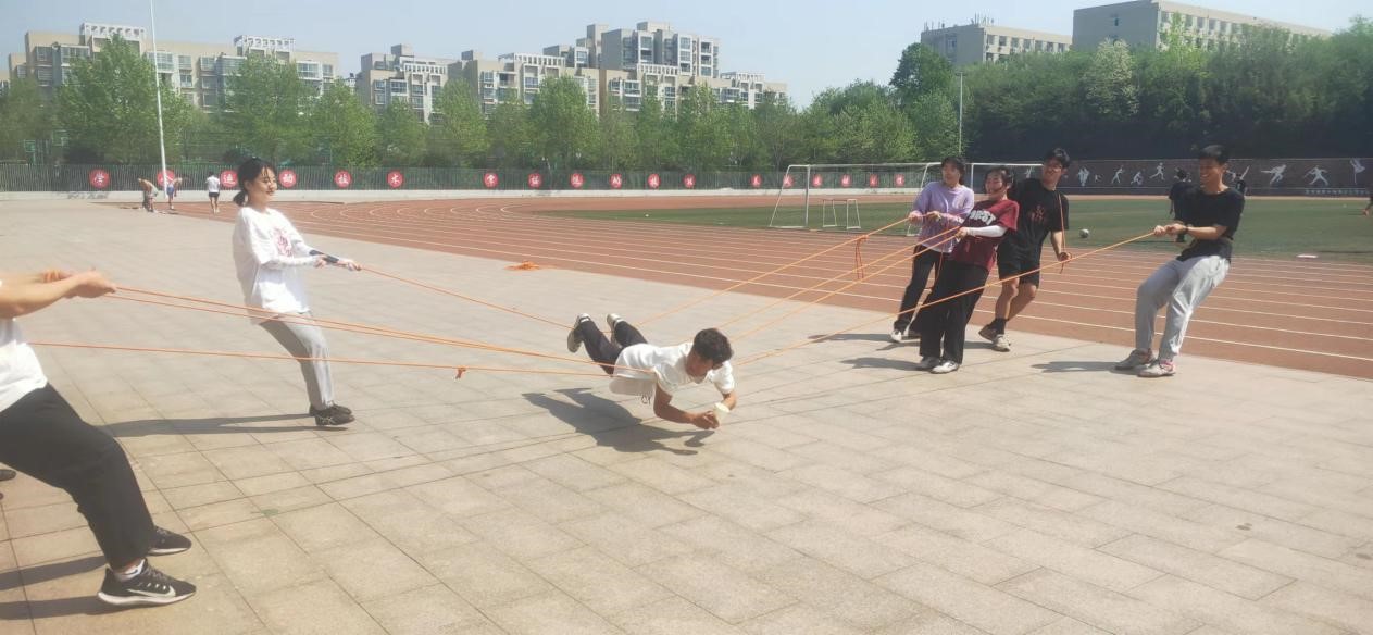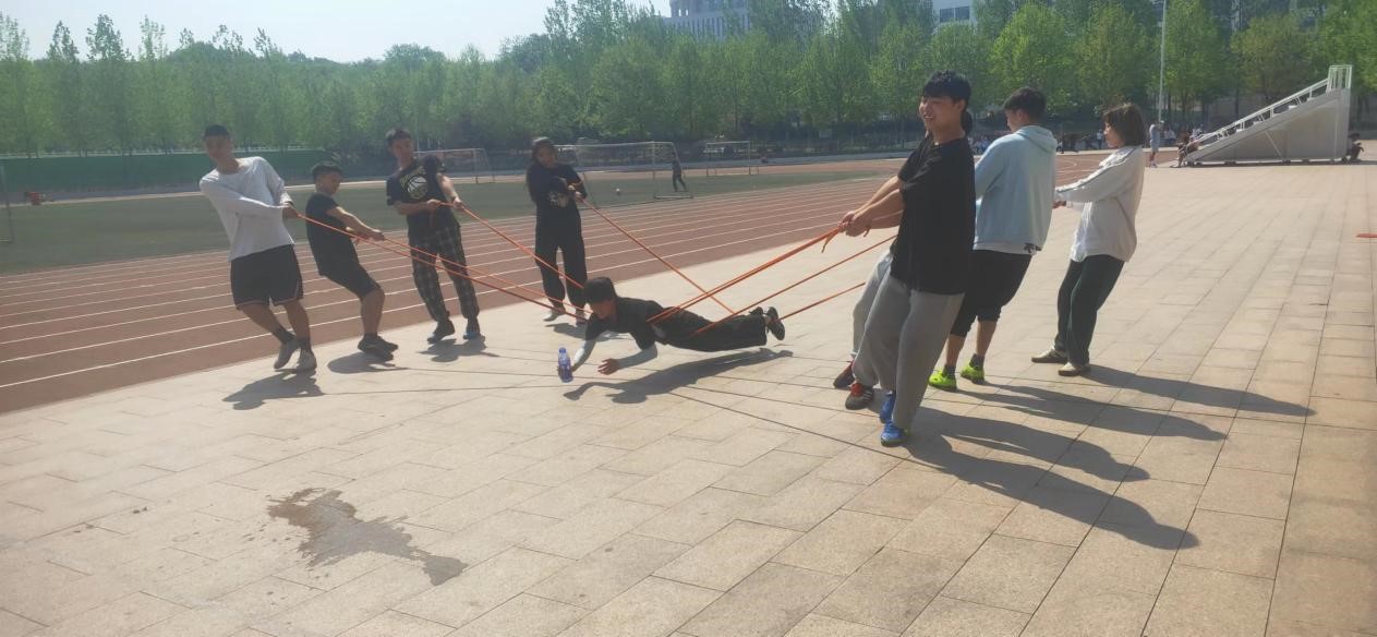 为培养学生团结互助精神和创新思维,让每个同学更好融入集体,提升班级凝聚力。4月10日,体育学院休闲体育专业20级学生在田径场开展“荆棘取水”心理健康活动。