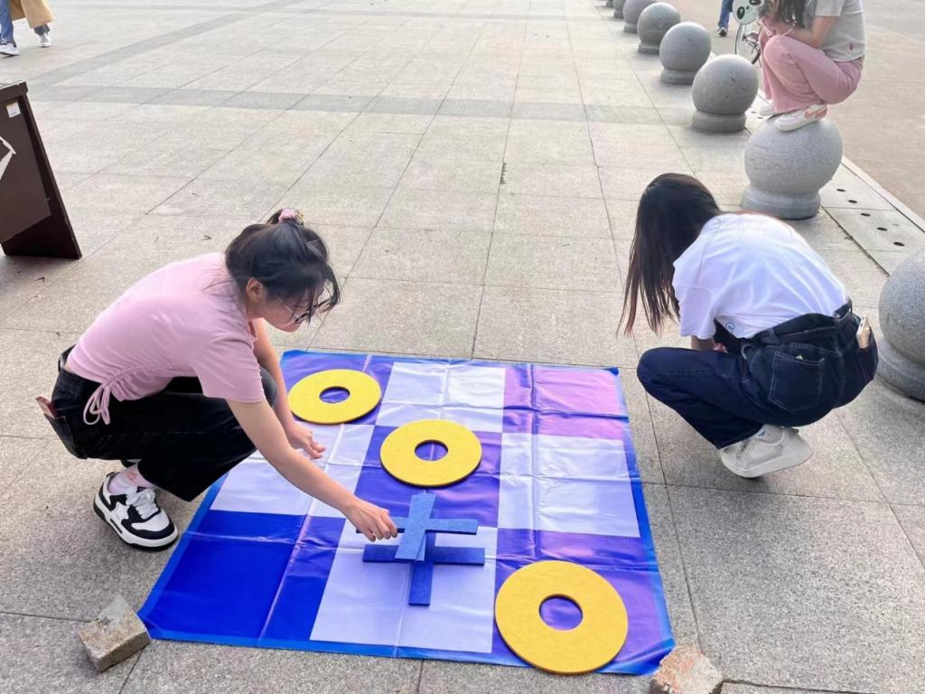 本次活动进行了抓铅笔,踩气球和井字棋三种比赛游戏,活动专区前参与同学络绎不绝路。首先由工作人员为同学们介绍活动项目,带领对该项目感兴趣的同学前往场地参加活动,分小组进行参与,最后在工作人员的带领下前往领奖台。奖品包含可爱动物盲盒、古风扇形明信片、励志奶糖等,种类新奇,吸粉无数。
