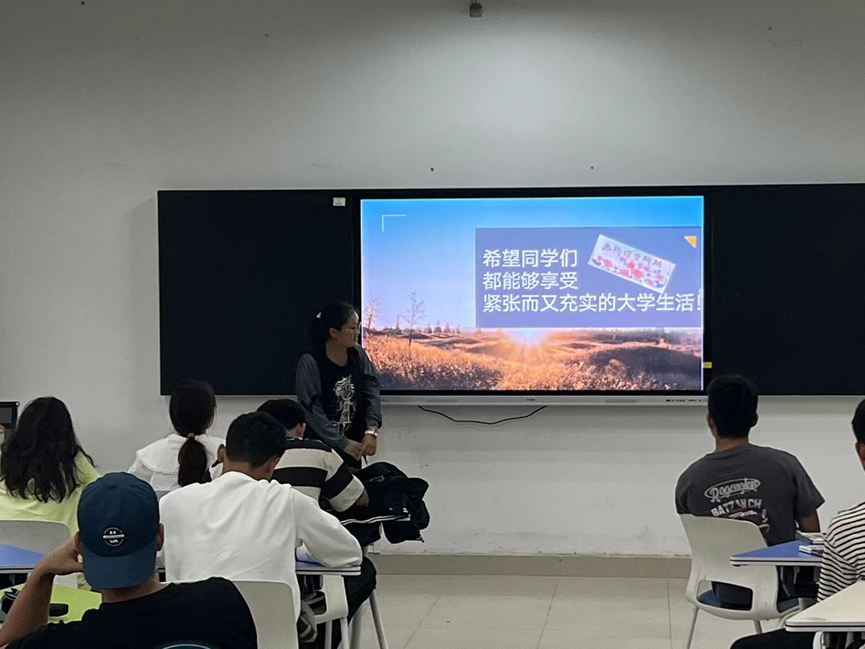 班会由心理部部长郭家欣主持开展,以最近英语四级的报名展开,对同学们的心理进行积极引导。班会介绍了学业压力的产生、适度的学业压力的积极作用以及如何调节过度压力等。在班会期间,同学们畅所欲言,对于英语四级以及之后的就业方面展开激烈的讨论。最后以学姐学长的心灵鸡汤结束使同学们对于自己的方向更加坚定。