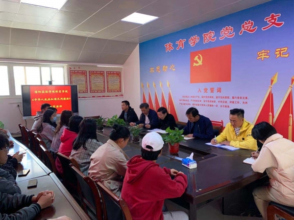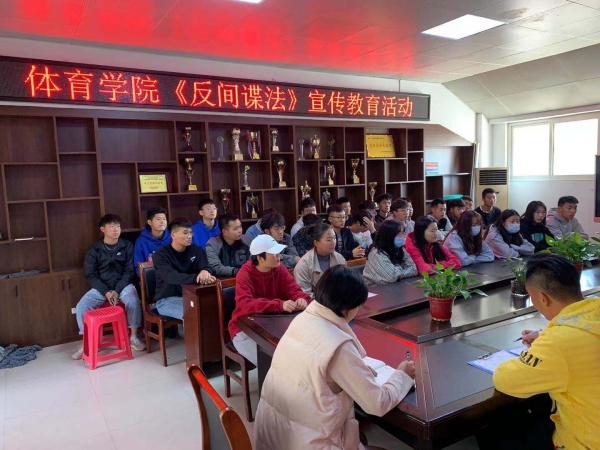 为进一步深入贯彻人民防线宣传工作,在《反间谍法》颁布实施六周年之际,体育学院积极开展学习《反间谍法》,院党总支书记李耕,院长李俊,党总支副书记李远胜,教师代表何艳强、赵宇、龚静阳出席,休闲体育专业2019级学生参加。
