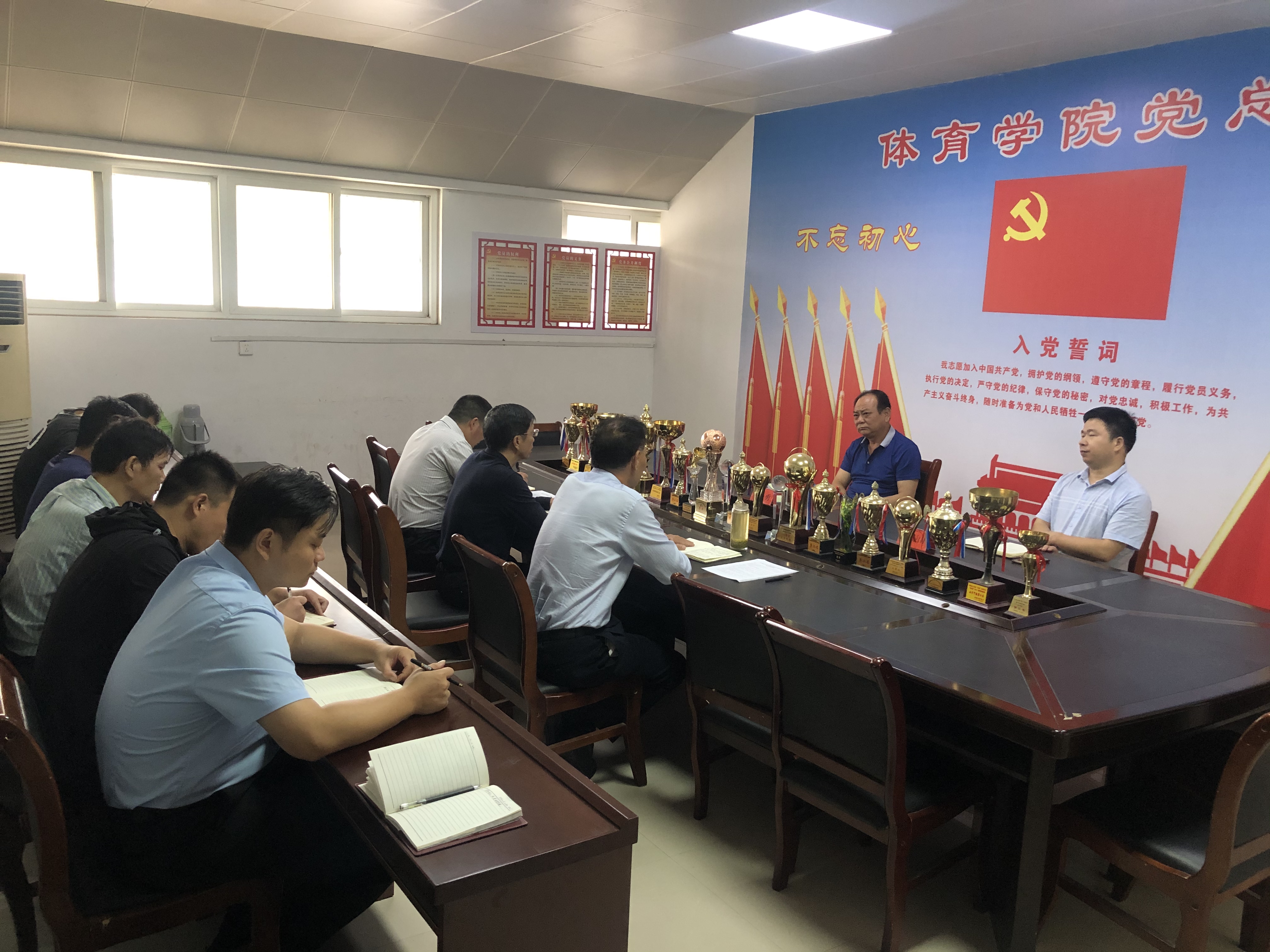 6月22日下午,刑勇校长到体育学院召开座谈会,调研指导学院工作。体育学院党总支书记李耕、院长李俊、副院长郭德兵及科级以上同志参加座谈会。