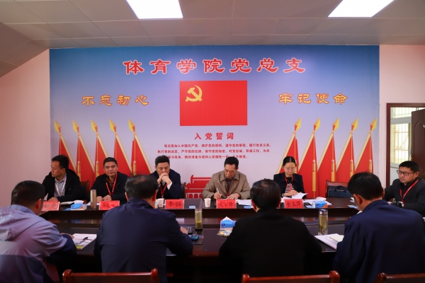 4月14日上午,校第一督导检查组副校长文宗锋、校纪委书记李强、信阳师范学院仓玉萍教授、校级督导团副团长马俊义教授、国有资产管理处副处长左春生、教务处副处长赵亮、教务科科长李雯瑞一行七人,莅临体育学院检查指导本科教学工作合格评估工作。学院领导班子成员及教师代表参会。