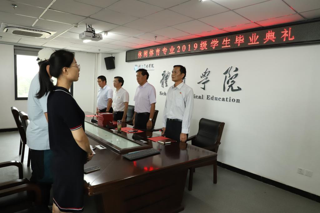 6月9日下午,体育学院休闲体育专业2022届毕业典礼在我院会议室隆重举行,学院领导班子、教师代表出席。典礼由党总支副书记李远胜主持。