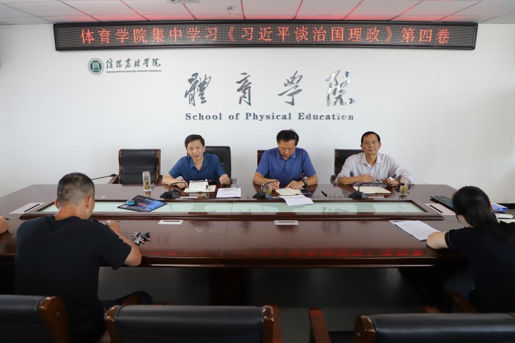 9月6日下午,体育学院召开工作会议,集中学习《习近平谈治国理政》第四卷。会议由党总支书记李耕同志主持。