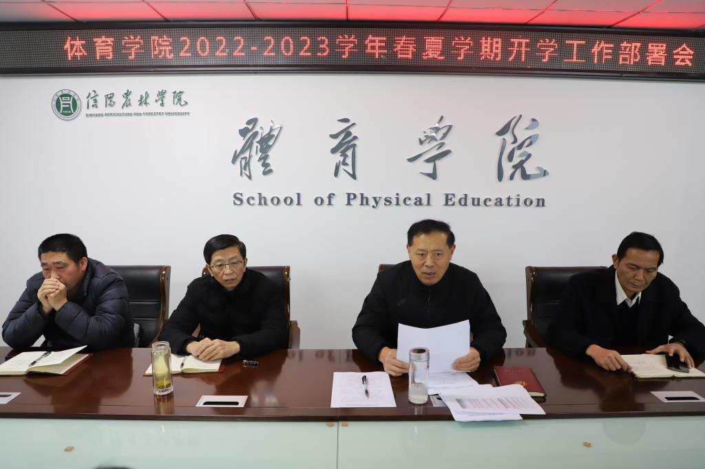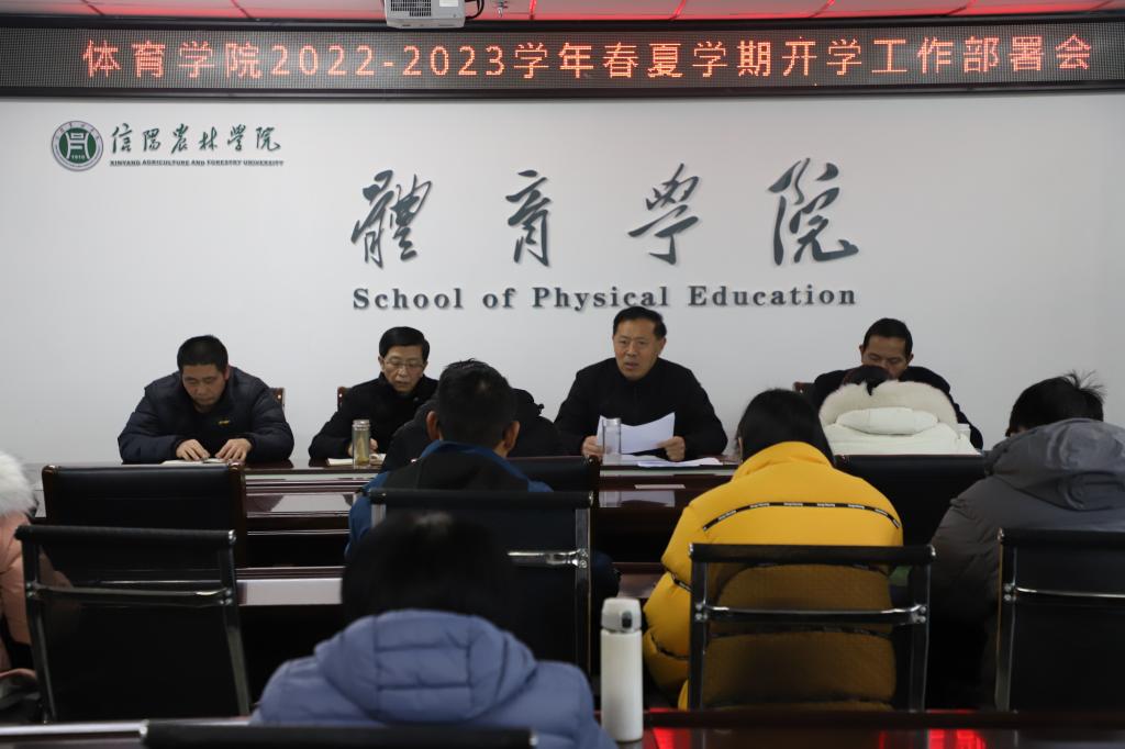 2月10日上午,体育学院在院会议室召开了2023年春夏学期工作会议,研究部署新学期学院各项工作。会议由院长李俊主持,全体教职工参加了会议。