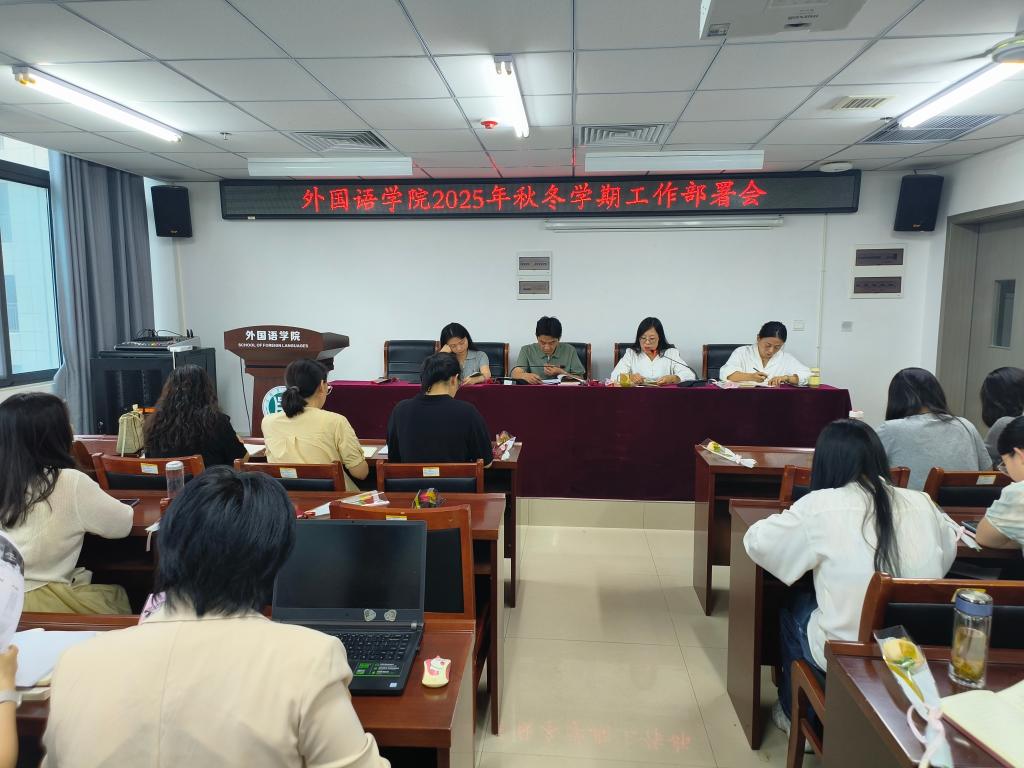 9月9日下午,外国语学院在3B实验楼205会议室召开2025年秋冬学期工作部署会,会议由院长芦晓莉主持,全体教职工参会。
