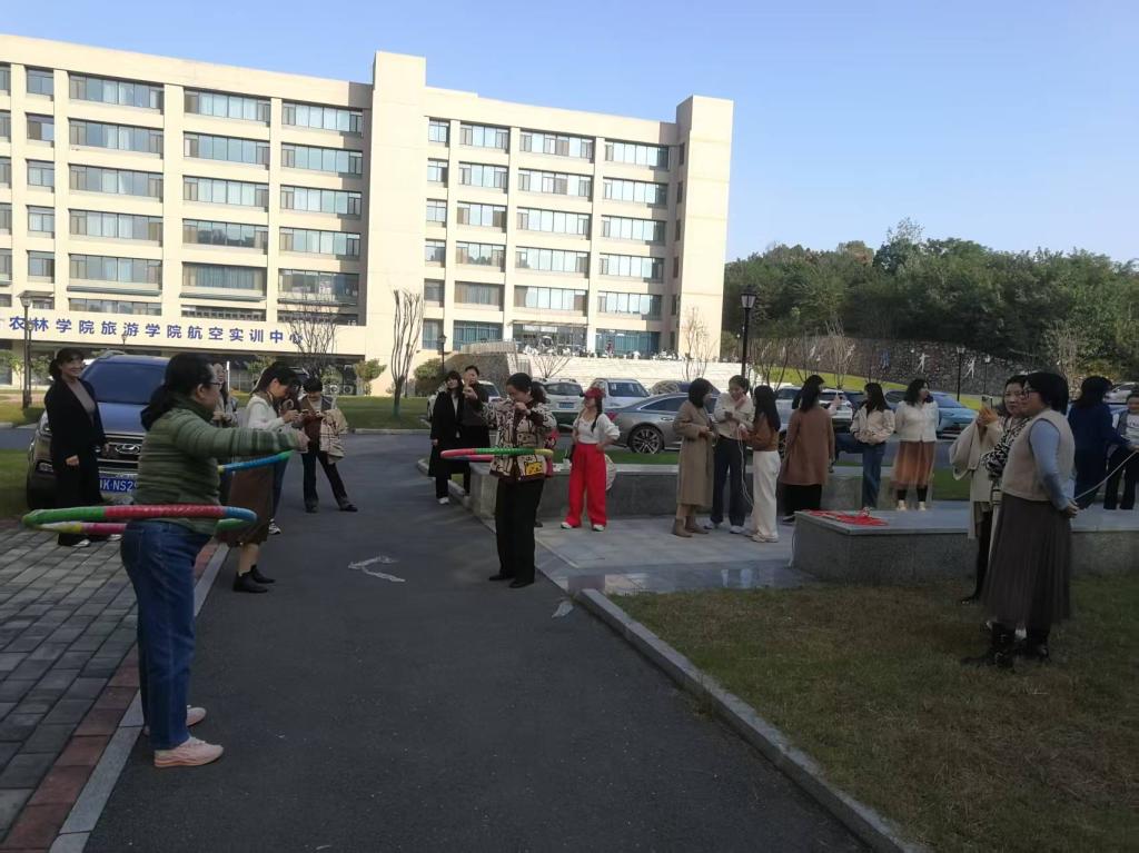 金秋时节,天朗气清。为缓解教职工教学科研压力,增强团队凝聚力,近日,beat365在线平台官网外国语学院分工会以 “金秋跃动,活力外院”为主题,在beat365在线平台官网3B实验楼楼下广场开展健身活动,呼啦圈、跳绳两大项目吸引全体教职工积极参与。