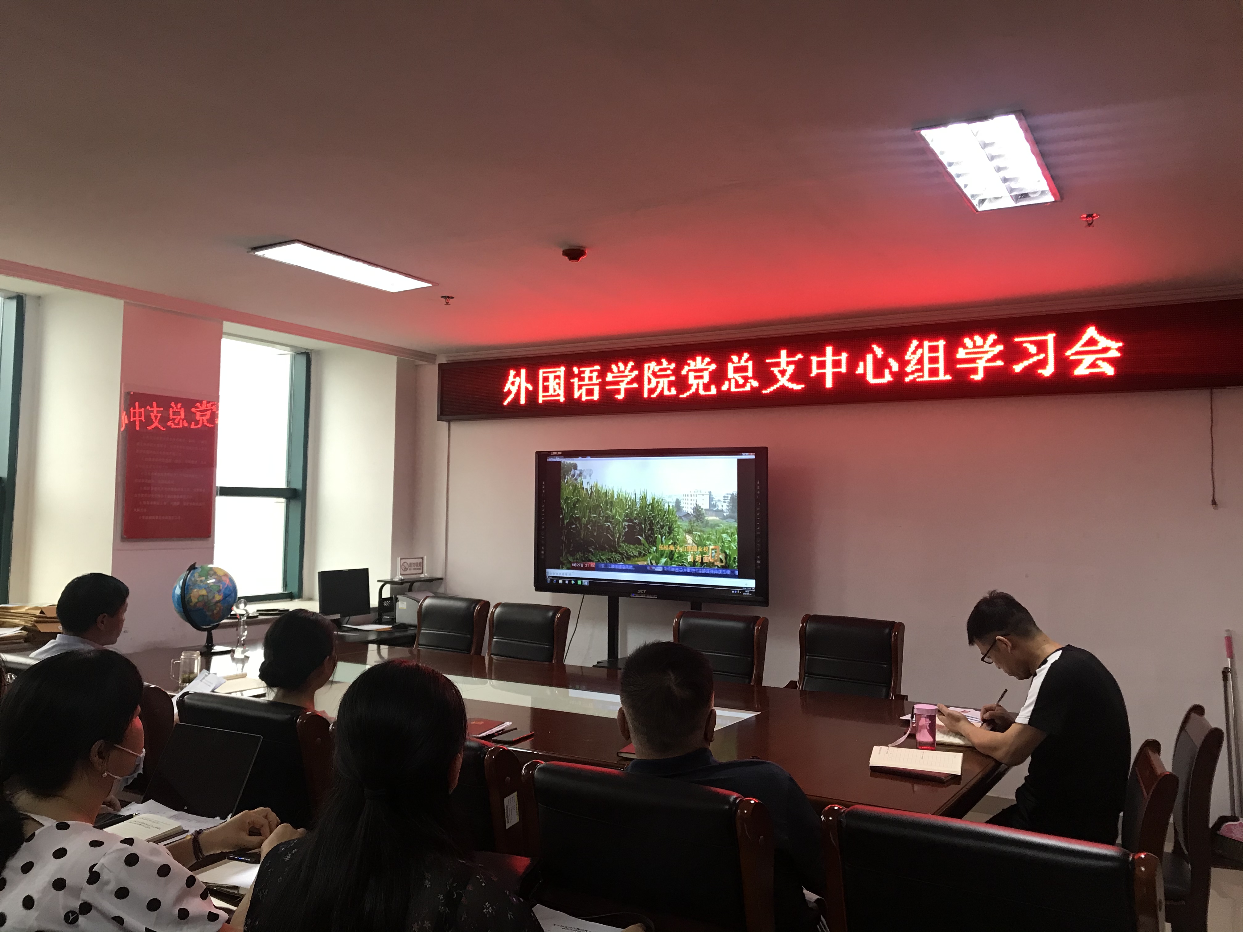 2020年7月14日,外国语学院在行政楼803召开中心组学习会。学院班子成员、总支委员、党支部书记参会,会议由党总支书记张志强主持。