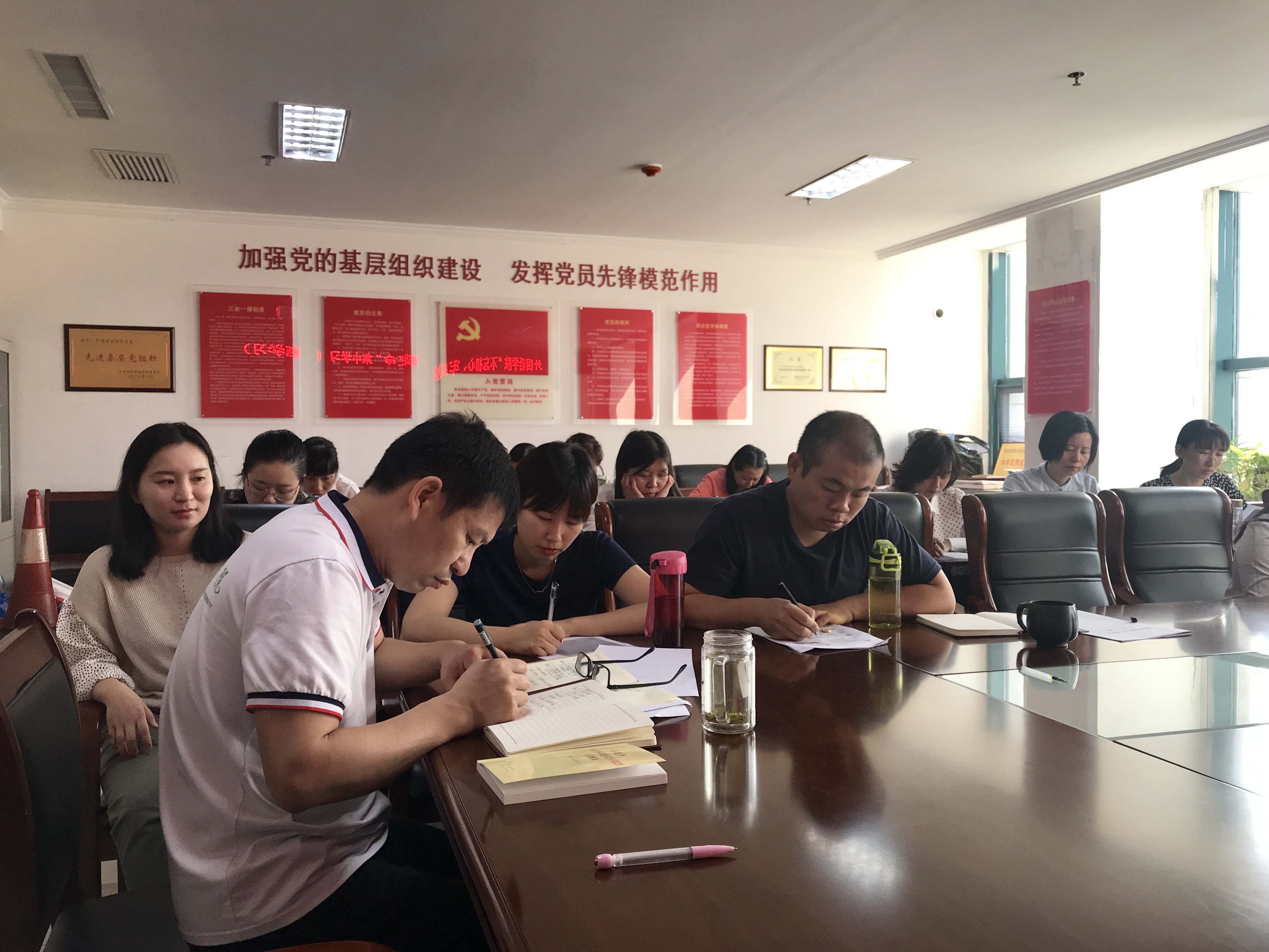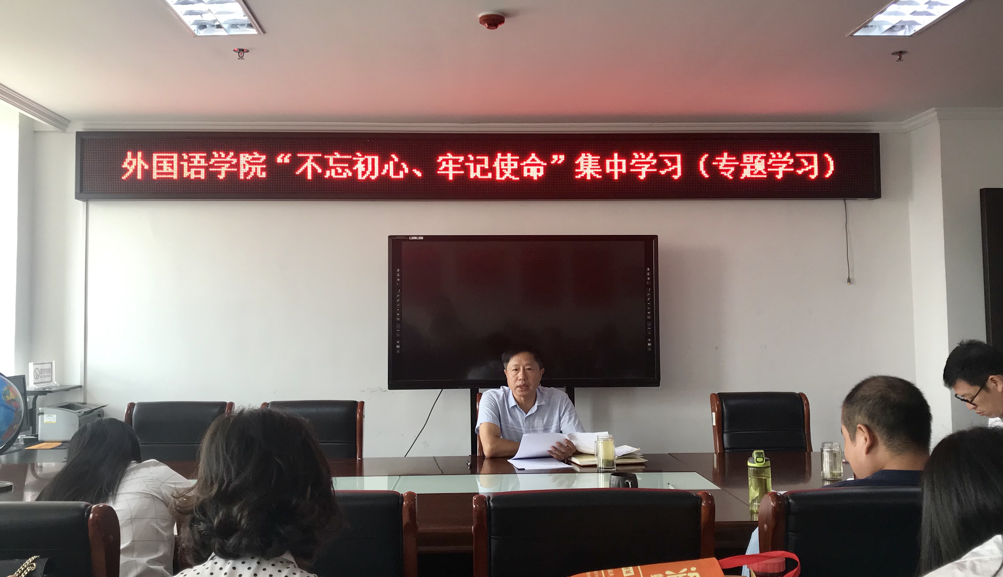 会议主要学习了文章《深化标本兼治 一体推进不敢腐、不能腐、不想腐——河南开展以案促改工作的创新和实践》及以案促改的案例——海南省琼台师范学院腐败窝案剖析。“为人师者,必先正其身,方能教书育人”,党总支书记张志强在学习中指出琼台师范学院出现的贪污腐败案例主要原因有:一是管党治党责任缺失,学校前进航向偏离;二是纪律意识淡薄,对各项规定置若罔闻;三是思想防线崩塌,在金钱的诱惑下突破底线。他结合琼台师范学院腐败案例强调要进一步加强学院党风廉政建设和纪律作风教育,提升党员干部廉洁自律意识,筑牢党员干部拒腐防变的思想防线,同时要加强党性修养,严格按制度办事,做到慎行、慎言、慎思。最后,全体教工党员一起学习了《中国共产党廉洁自律准则》和《中国共产党纪律处分条例》。会上还对接下来的“不忘初心、牢记使命”主题教育作了其他安排。(外国语学院)