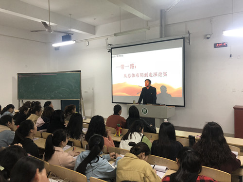 为贯彻落实全国、全省高校思想政治工作会议精神,切实加强改进高校大学生思想政治工作。3月26日上午,外国语学院党总支书记张志强在2教306为2018级商务英语、翻译专业的学生上了一堂题为“一带一路:从总体布局到走深走实”的《形势与政策》课。