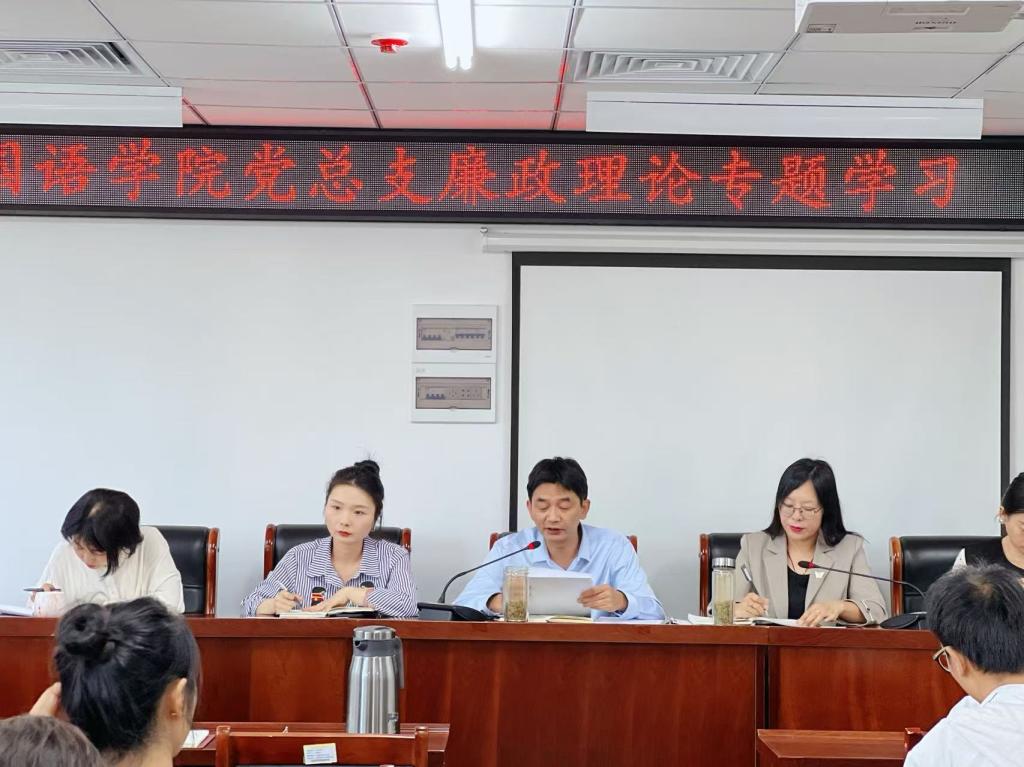 为深入开展学习贯彻习近平新时代中国特色社会主义思想主题教育和党的二十大精神,进一步推进新时代廉洁文化建设,9月24日,外国语学院党总支在3B实验楼205会议室召开廉政理论专题学习暨警示教育大会。会议由党总支书记蔡志主持,全体教职工参会。