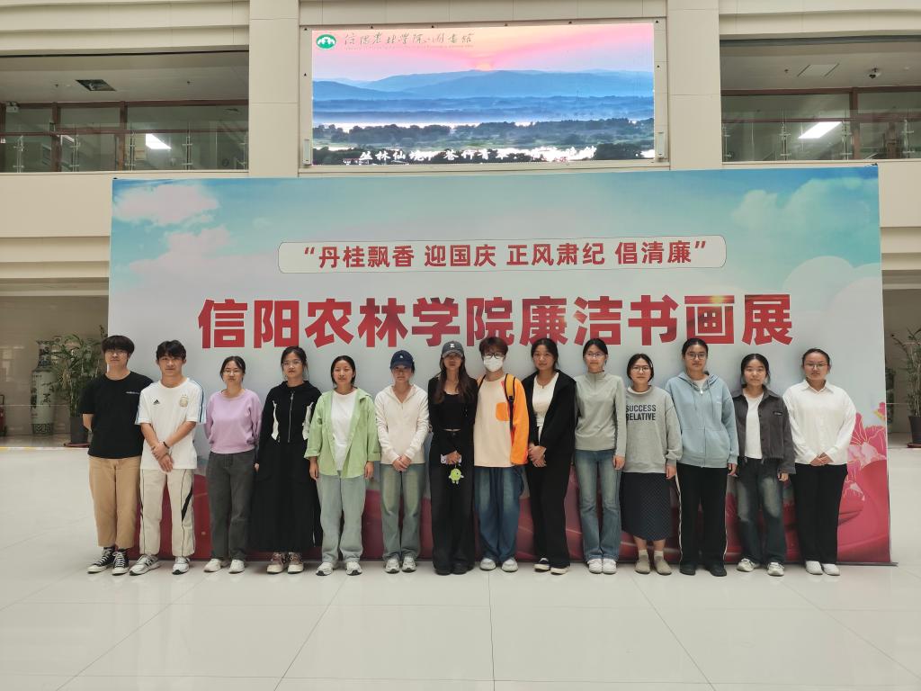 2024年9月24日,外国语学院党总支组织在校师生党员前往图书馆一楼观看廉洁书画展览。