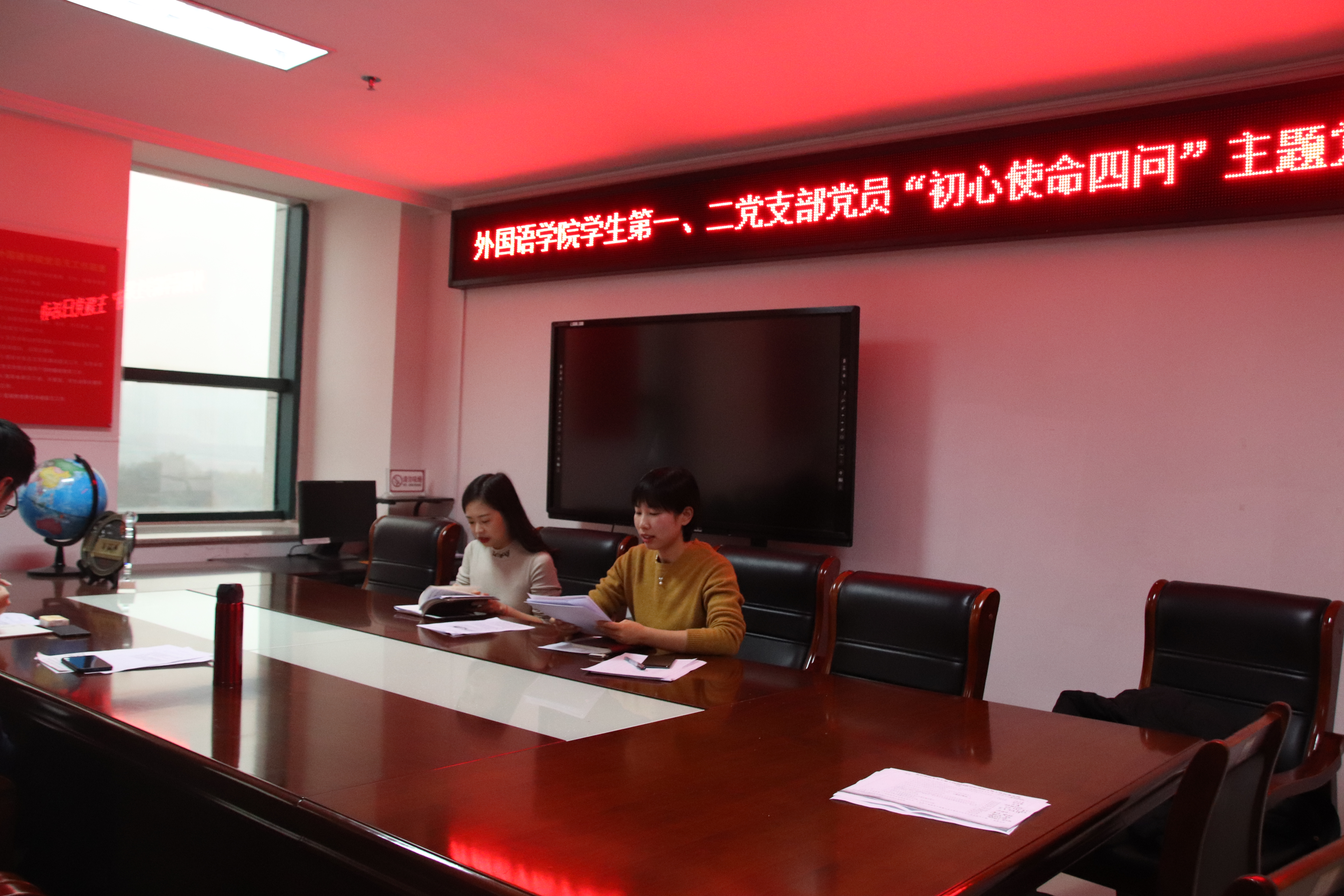 为推动“不忘初心、牢记使命”主题教育走深走实,20191130日下午4点,外国语学院学生第一、二党支部在行政楼803开展党员“初心使命四问”主题党日活动,学生第一党支部书记范琼琼、第二党支部书记朱俊梵主持本次党日活动,支部全体学生党员参加。