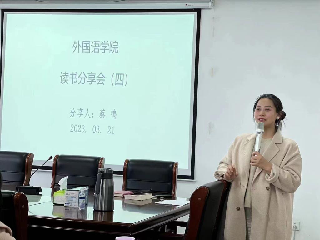 为进一步提升教师素养,营造学院读书氛围,增强教师文化底蕴,打造终身学习型教师团队,321日下午外国语学院读书分享会第四期在院办402举行,同时也为学院本学期该项系列活动拉开序幕。外国语学院班子成员及全体教职工参加了此次分享会。