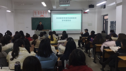 为进一步提高我院学生英语口语能力,规范学生语音语调,12月15日下午,外国语学院特邀我市知名英语教育学者、我院特聘教授阎成席老师于二教101教室为我院学生作题为How to Speak English Fluently?专题讲座。