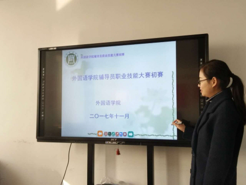 为进一步促进我院辅导员队伍职业化和专业化建设,提升辅导员的职业能力和工作水平,2017年11月25日,外国语学院在行政楼803举办了辅导员职业技能大赛初赛。大赛由我院党总支书记张志强,学工组副组长吴宏,辅导员范琼琼、沈克琳、蒋博如担任评委,我院辅导员陆岱宝、熊锐、张珊姗、赵瑞、朱俊梵参加了本次比赛。