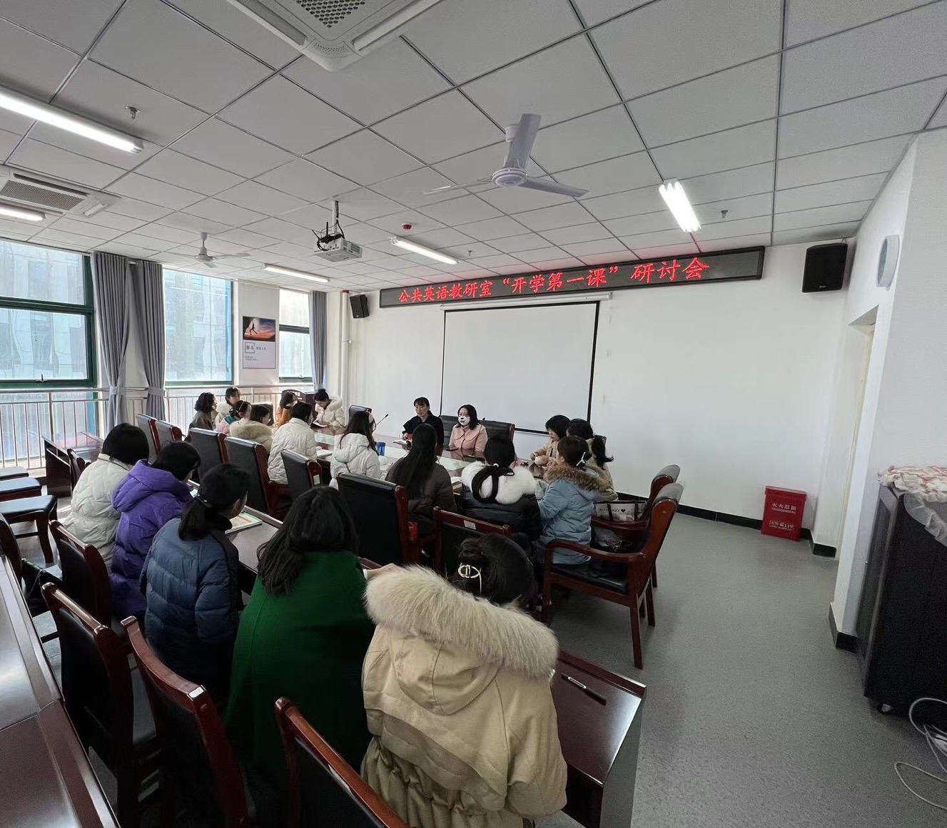 2023年2月14日下午,外国语学院公共英语教研室在文学艺术楼402开展了教研活动暨“开学第一课”研讨会,公共英语教研室全体教师参加了此次教学活动。