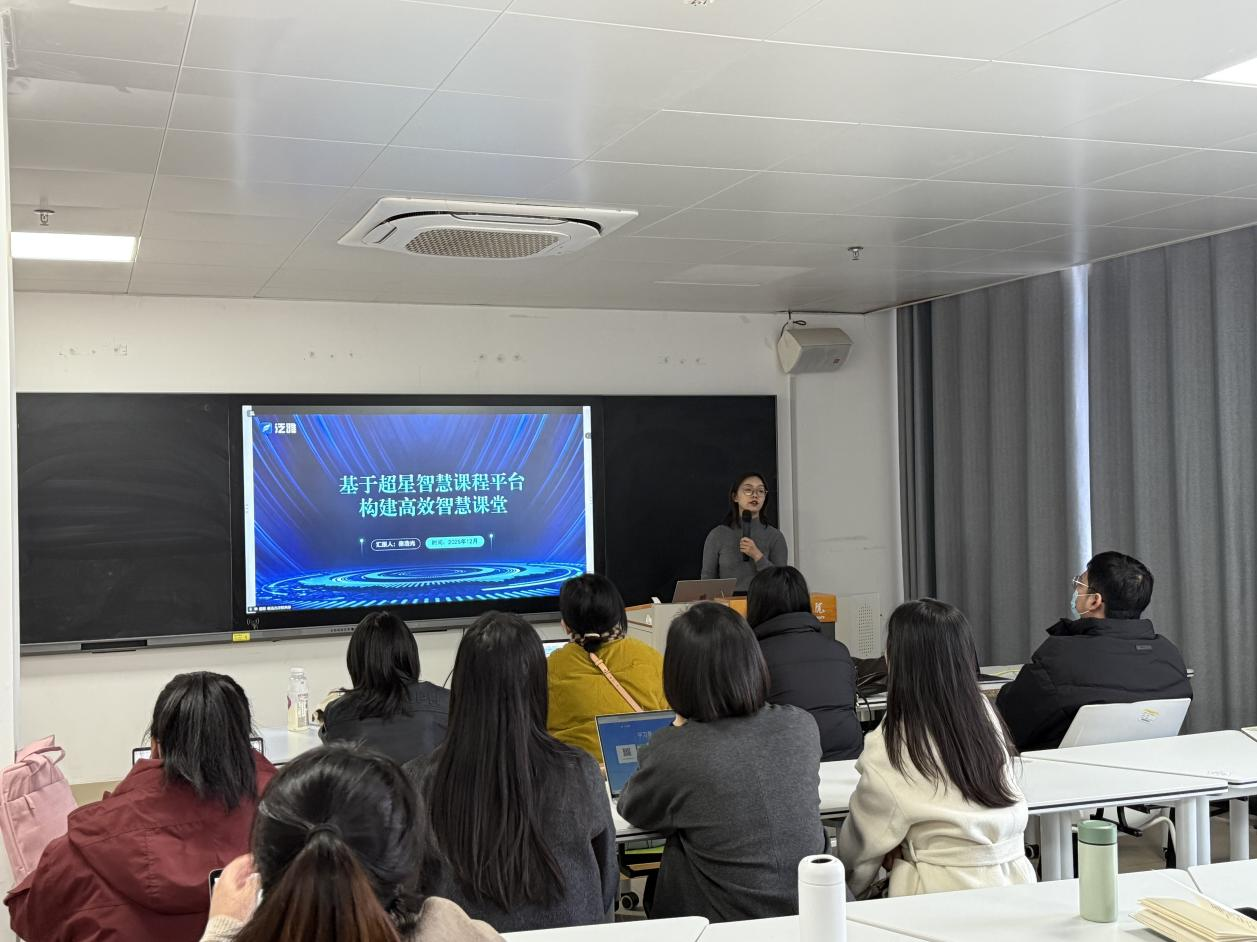 为积极推动教育教学数字化转型,提升教师运用信息技术创新教学的能力,12月9日下午3:30,我院特邀超星平台培训人员来院开展“AI辅助教学应用”专题培训。各教研室成员齐聚综合楼611智慧教室,共同学习交流AI技术在教学过程中的实践方法与创新路径,培训由学院副院长蔡鸣主持。