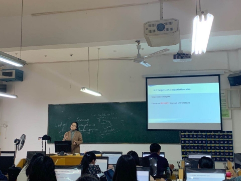 本周来自三个教研室的五位青年教师分别在15分钟内试讲了大学英语(三)、英语应用文写作、第二外语(日语)、英语阅读、国际商务谈判等公共与专业课程。参赛教师各有所长,各展风采,授课热情洋溢,现场“干货满满”,听者受益匪浅。同时,老师们根据所授课程特点,深挖专业课程中蕴含的思政元素,培养学生正确的价值观。