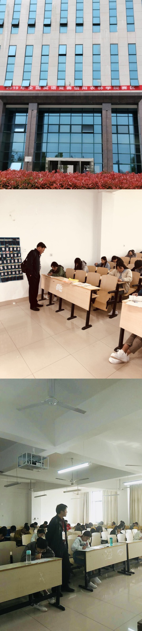 4月14日上午,外国语学院组织承办了2019年全国大学生英语竞赛,竞赛在二教206,207,209教室共设置了六个考场,分为A类,B类,C类以及D类四种参赛形式,共159名学生参加。竞赛在4月14日上午九点开始,十一点结束。
