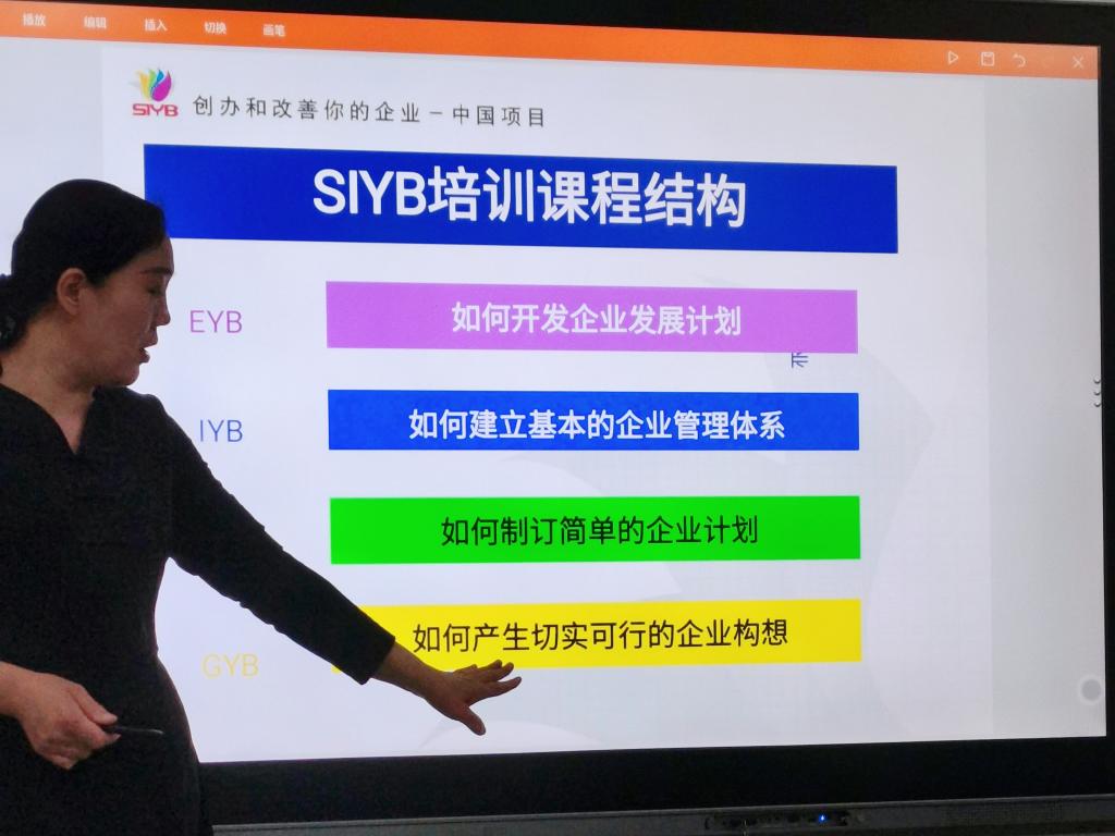 SYB,是国际劳工组织为帮助微小企业发展,促进就业,专门研究开发的一系列培训小企业家的创业培训课程。培训以《创办你的企业》(简称SYB)教材为辅助资料,老师通过PPT展示、视频播放等进行授课。为积极响应“大众创业,万众创新”的号召,促进我院学生就业创业,本次培训自4月20日开课,为期八天,采用小班授课模式。在培训过程中,秦荣华、董秀丽两位老师通过列举身边人创业的案例进行分析,以游戏、提问的方式与同学们进行互动,既活跃了课堂气氛,又使同学们更加深刻的了解了相关创业知识。课程共分为十步,最后一步要求同学们根据所学每人制定一份创业计划书,通过这一过程,同学们在活跃思维的同时了解了开办一个企业的具体程序以及创业的艰辛。