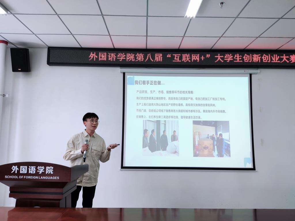 为响应全面深化高校创新创业教育改革,引导大学生树立正确的就业观和创业观,外国语学院于5月20日中午在人文艺术楼402举办第八届“互联网+”大学生创新创业大赛。党总支副书记吴宏、团总支书记高宇、辅导员关迎雪、陈嘉、方钰媛,以及参赛项目学生参加了本次活动。