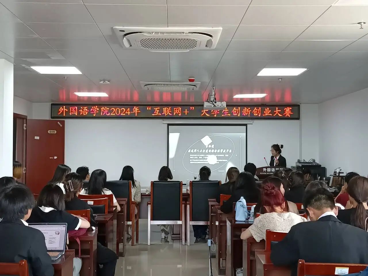 为了实现以赛促学,激发学生的创新潜力,培养我院具备创新创业精神的新一代力量,外国语学院于2024年5月13日在众创楼608举办了第十届“互联网+”大学生创新创业决赛。22、23级十个项目团队经学院初赛脱颖而出。学院党总支副书记魏薇、团总支书记高宇、关迎雪老师、魏君仪老师、张豫老师和叶又超老师担任此次大赛评委。