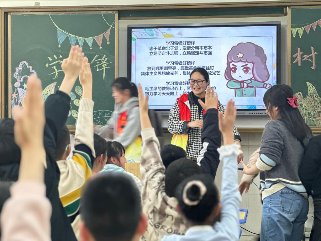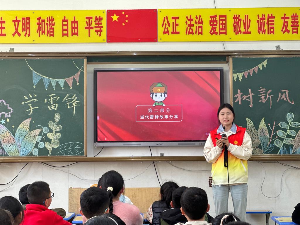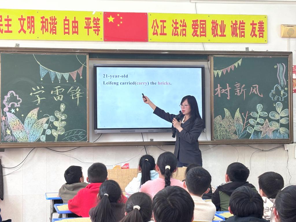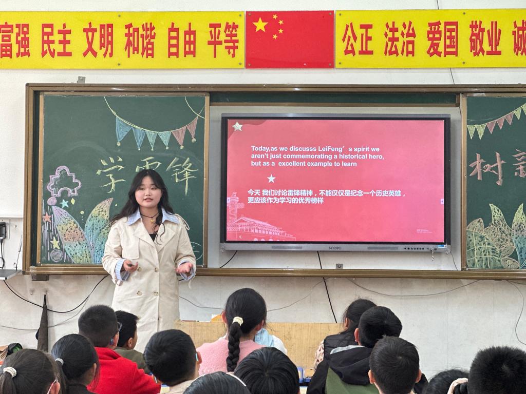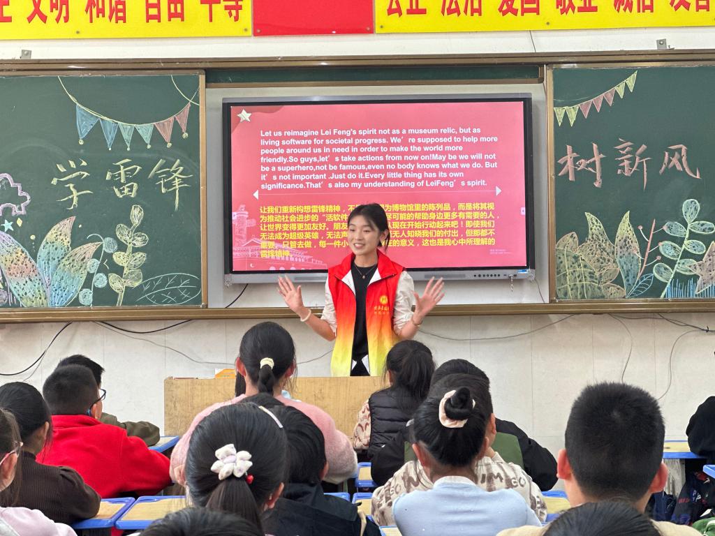 活动上,芦晓莉以双语形式讲述雷锋故事,深刻阐述了雷锋精神的核心内涵。院青马工程学员代表王英飒讲述了当代雷锋故事,号召同学们争做新时代雷锋。青年学生王潇潼带来了精彩的双语演讲。红语学员代表崔欣蓉带领小朋友们一起学习了“学习雷锋”歌曲和手势舞。活动最后,学生党员代表为每位小朋友送上了亲手折叠的彩色折纸作为纪念礼物。现场氛围活跃,活动受到了羊山外国语小学师生的一致好评。
