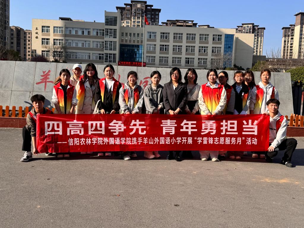 为全面贯彻习近平总书记关于志愿服务的重要论述和重要指示批示精神,外国语学院于3月21日下午赴羊山外国语小学开展了“四高四争先,青年勇担当”主题双语社会实践活动。院长芦晓莉、团委书记高宇、专职组织员朱俊梵及学生代表参加了本次活动。
