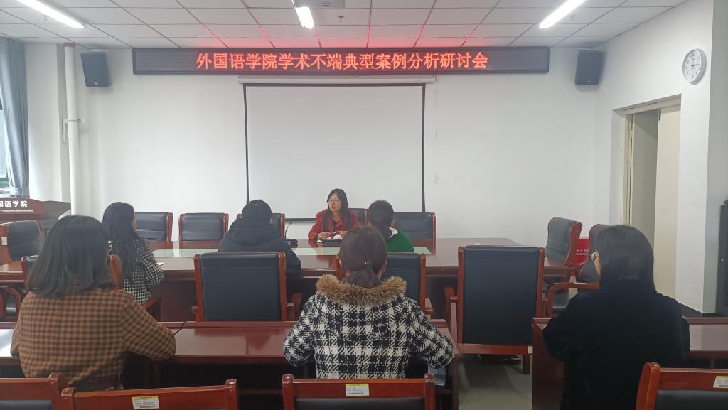 为弘扬科学精神,创建诚信校园,营造良好的学术生态,11月10日,外国语学院在文学艺术楼402召开学术不端典型案例分析研讨会。