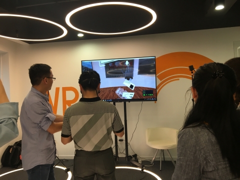此外,杭州师范大学外国语学院组织参会师生现场观摩“数字媒体与人机交互研究中心”与“虚拟现实外语实训中心”,亲身体验虚拟现实技术,达到了良好的效果。