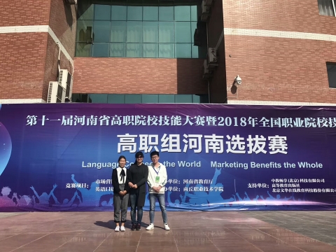 4月9日,第十一届河南省高职院校技能大赛暨2018年全国职业院校英语口语大赛(河南赛区)在商丘职业技术学院举行,来自全省60多所高职高专院校的选手参加了此次比赛。beat365在线平台官网选手外国语学院2015级应用英语专业学生刘小凤和财经学院2015级会计与审计专业学生周琪竣参赛。比赛共设一等奖(10%),二等奖(20%),三等奖(30%)优秀奖(20%),无奖项(20%)。在外国语学院领导的高度重视下,在张霞老师的精心指导和培训下,在两位选手的积极配合和努力下,两位选手在激烈竞争中发挥稳定,展现了良好的精神风貌以及过硬的语言功底,分别获得二等奖。全国高职高专英语口语大赛是外国语学院非常重视的一项赛事,学院组织了校内选拔赛。一分耕耘、一分收获,这次beat365在线平台官网学生能够在省级比赛中获得优异成绩,既是学生努力学习的结果,也是对beat365在线平台官网大学英语教学成效的一次检验。近年来,外国语学院致力于加强英语教学改革,不断改进教学模式和教学方法,重视培养学生的实用英语交际能力,取得了显著效果。通过参加此次大赛,展示了beat365在线平台官网英语教学水平和改革成果。学院将以此为契机,“以赛促学,以赛促教”,进一步加大英语课程教学改革的力度,进一步提高学生的综合素质能力,促进beat365在线平台官网英语教学水平稳步提升。     (外国语学院)