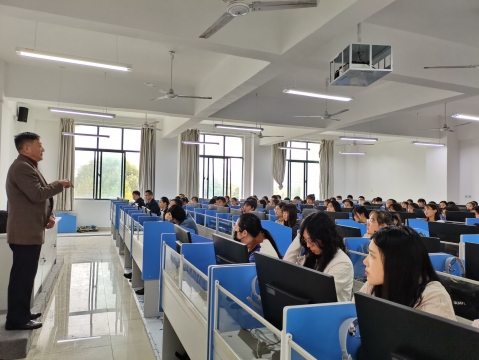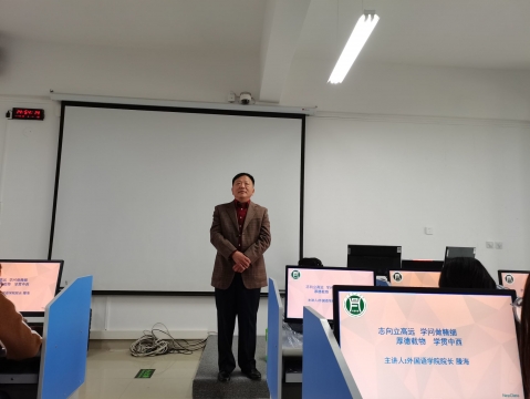 10月20日下午,我院于二教303开展专业思想教育报告会。会议由吴宏书记主持,外国语学院院长滕海担任主讲人,全体大一新生参加了本次报告会,