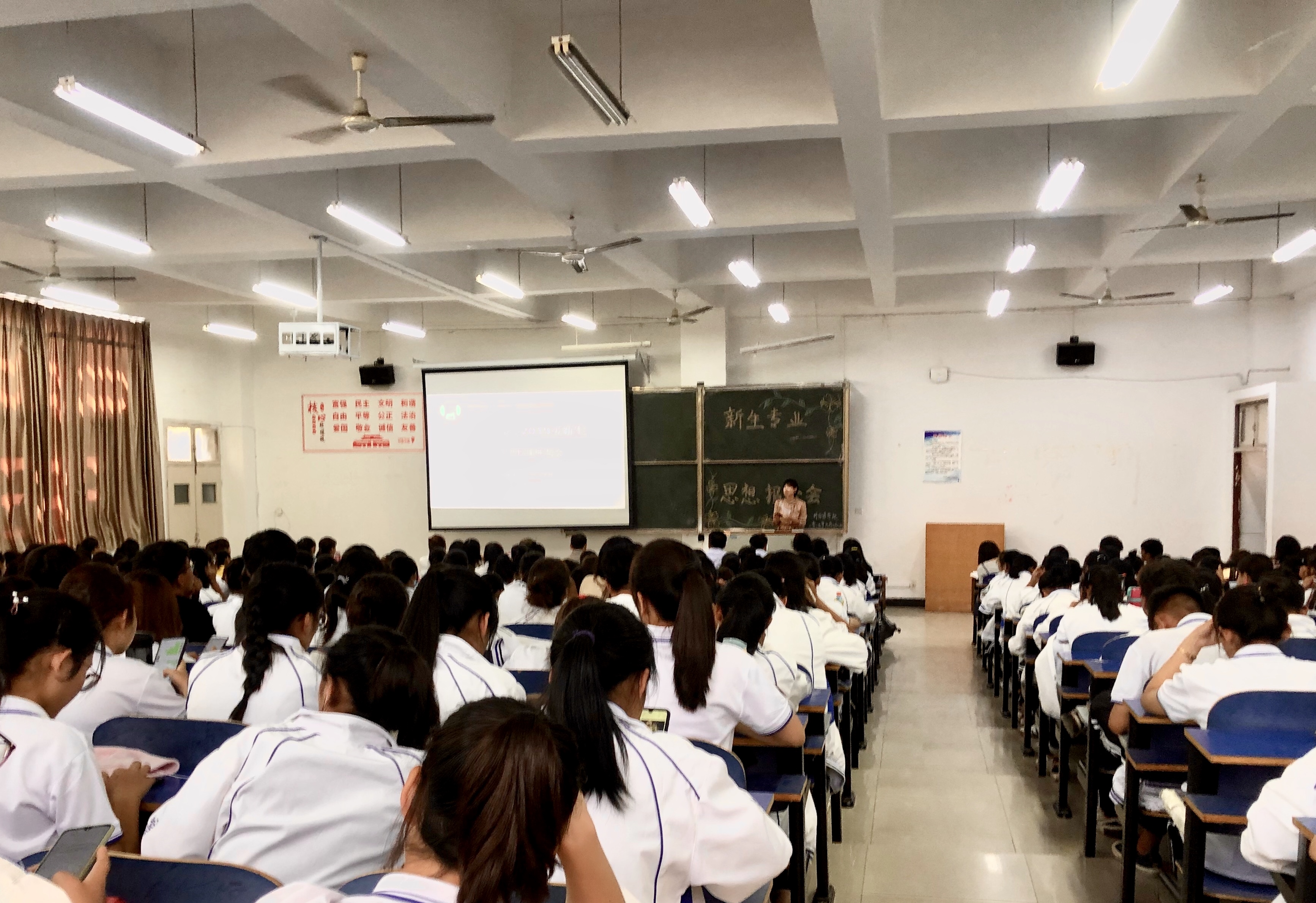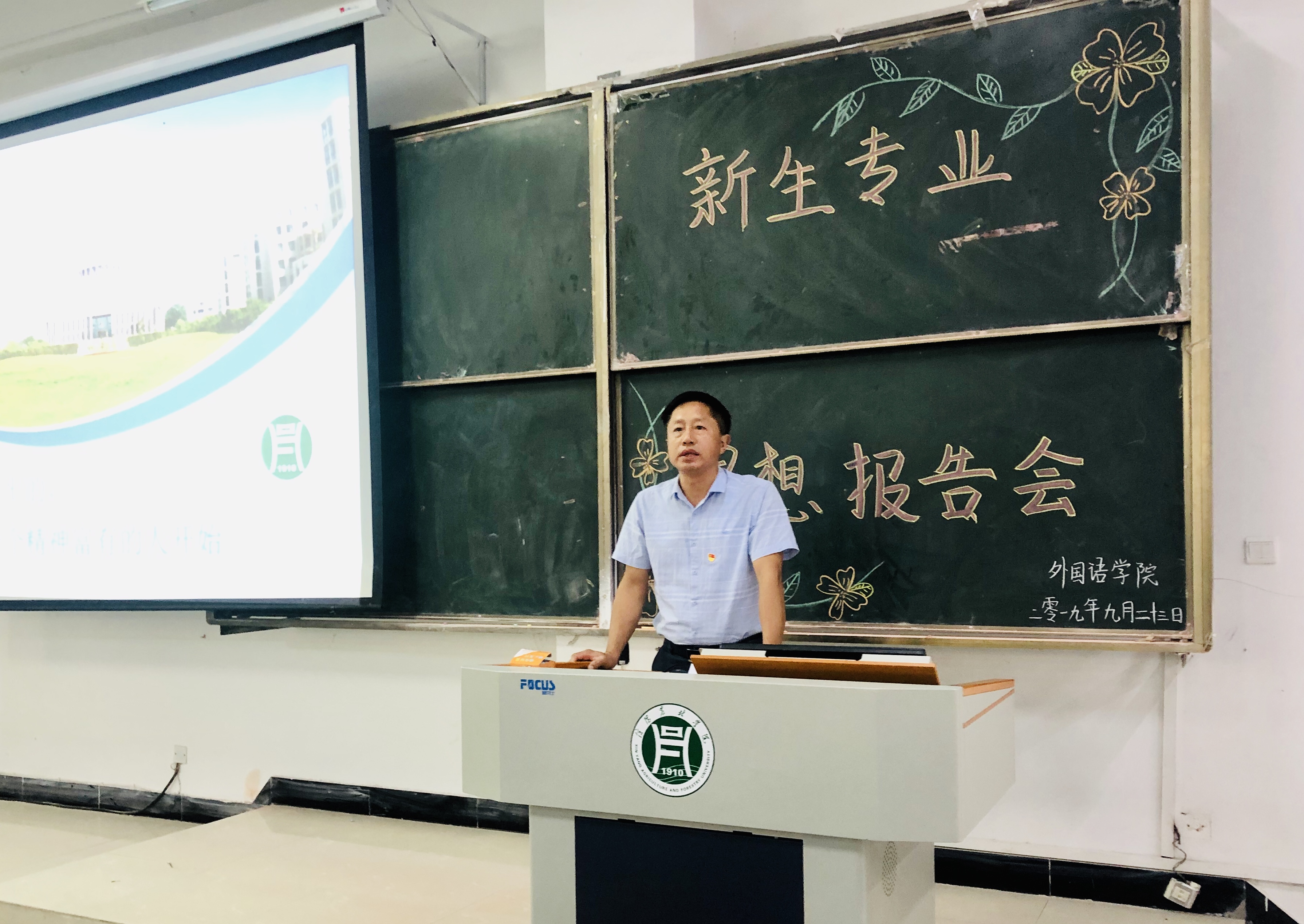 9月23日下午1点,外国语学院党总支书记张志强以“世界是平的,做一个精神富有的人”为题,为全体大一新生作入学专题教育讲座。