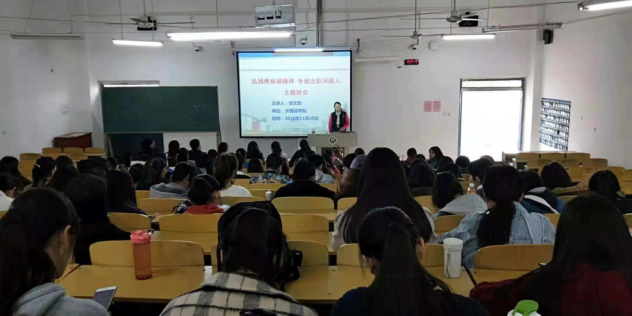 外国语学院召开“弘扬焦裕禄精神,争做出彩河南人”主题班会