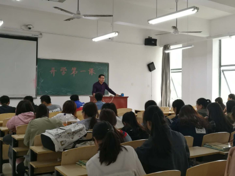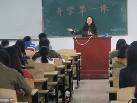 新学期伊始,外国语学院根据学校具体要求,为了在新学期更好地开展教学工作,9月4日中午十二点三十分,外国语学院团总支书记吴宏老师和辅导员赵瑞老师在二教208以“开学第一课”为主题召开学期总结暨新学期学生“收心会”,学院2015级商务英语、应用英语专业学生参加了此次会议。