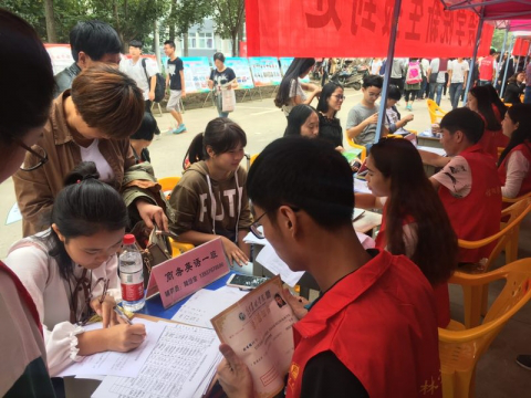 金秋九月,丹桂飘香。在这硕果满满的季节里,外国语学院2017年迎新工作如期展开。学院领导对于本次迎新工作高度重视,提早准备,力求真正做到“学生方便、家长放心”的一站式服务。迎新期间,高年级同学24小时轮流值班接待,志愿者全天候服务,让新生及家长都能感受到外院大家庭的热情和温暖。