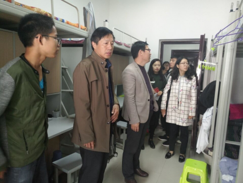 领导老师们深入走访寝室,对学生们的关心关怀受到了学生们的热烈欢迎,同学们表示将会共同营造更加良好的生活环境。