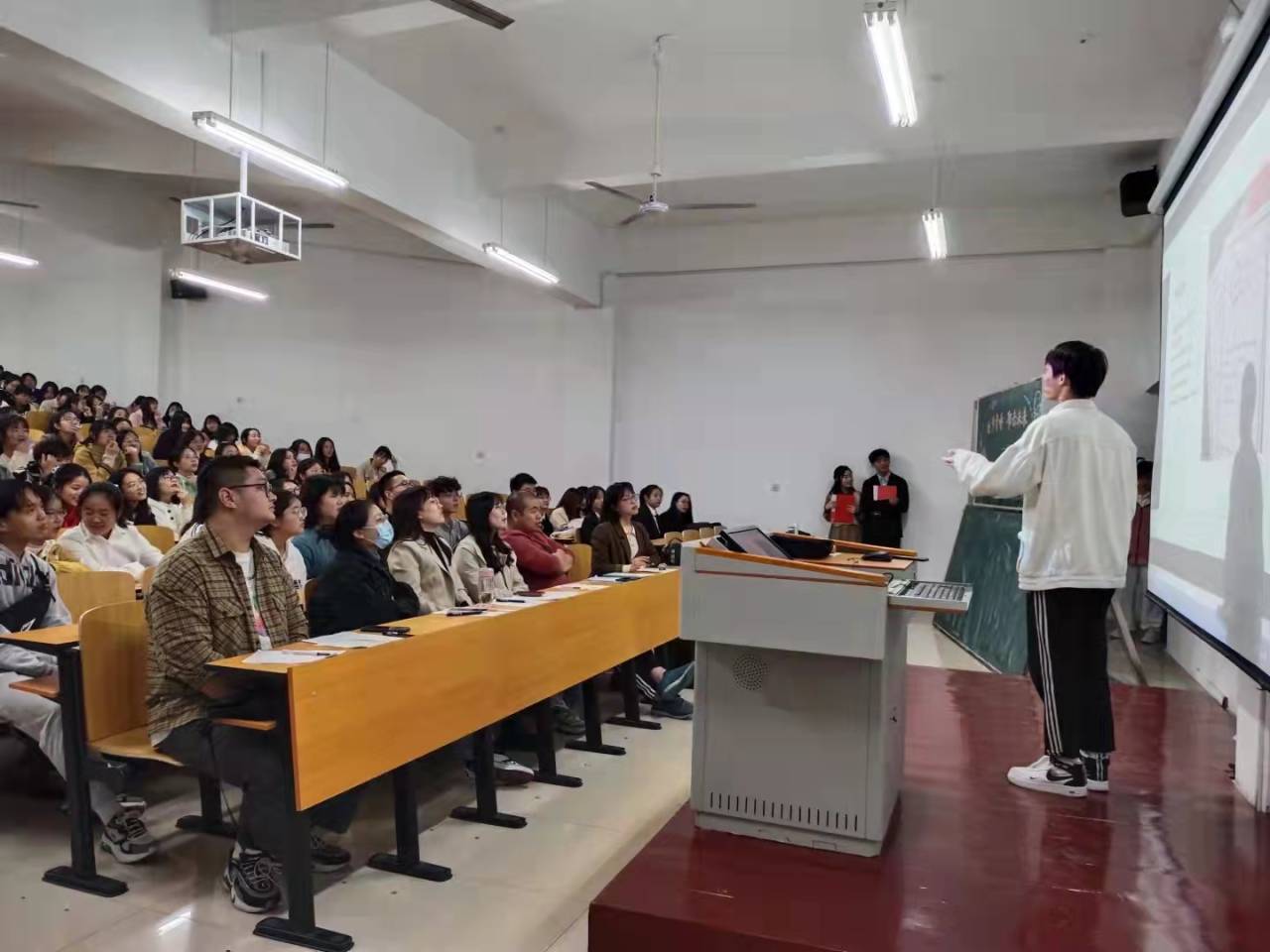 为了增强我院同学对未来职业规划的意识和积极性,明确个人目标和发展方向。10月27日晚,我院于二教304举办了外国语学院第九届职业与规划大赛。优秀教师代表闫达、19级辅导员高宇、20级辅导员、就业专员关迎雪,21级辅导员陈嘉、方钰媛、优秀学生代表岳子豪学长以及21级全体学生出席了本次活动。