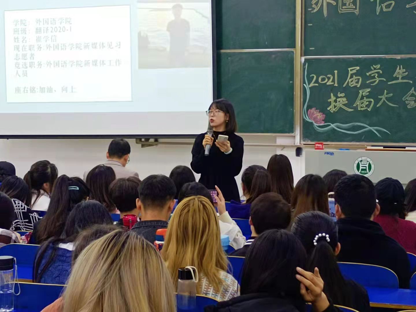 本次换届大会的成功举办,为我院学生组织注入了新鲜血液。相信新一届学生会将以“团结,求实,进取,创新”为宗旨,为外院的发展竭尽全力!