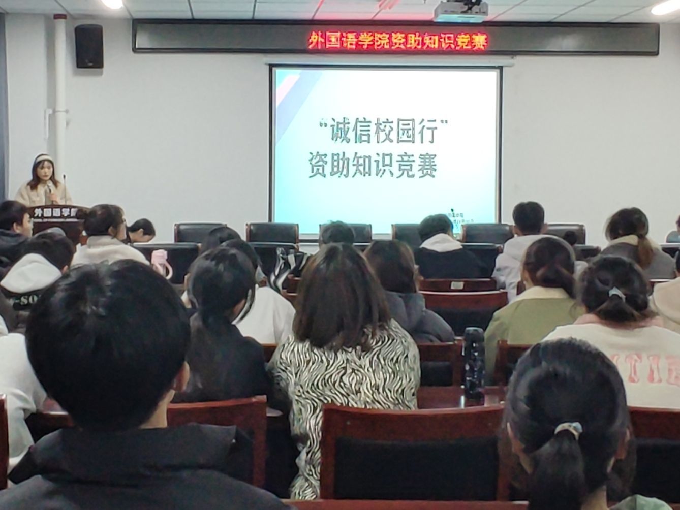 为进一步加大学生资助政策宣传力度,全面宣传各项学生资助政策和资助成效,确保国家资助政策落到实处,外国语学院于11月30日晚在人文艺术楼402举办了学生资助知识大赛。部分学生参加本次大赛。