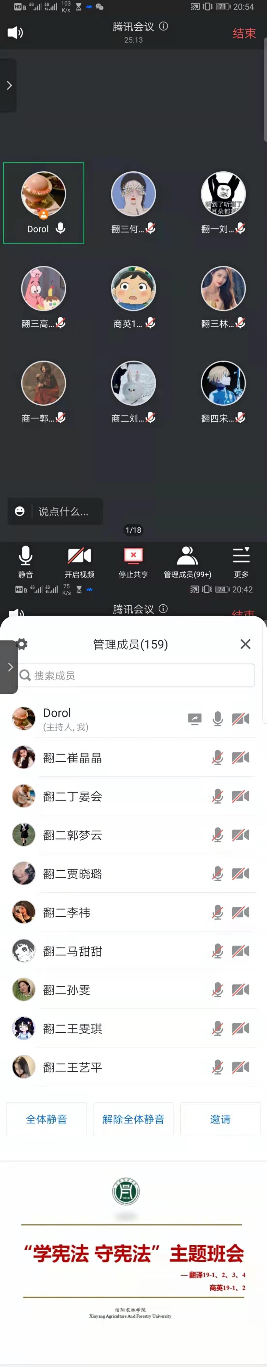班会中各班辅导员老师向同学们讲解我国宪法的历史,宪法在法治建设中的作用以及大学生如何守法用法等几方面进行了讲解。宪法是公民日常活动的根本准则,是培养公民宪法意识和法律精神的基础,也是正确认识公民基本权利和义务的依据。让同学们在以后的人生道路上做到知法懂法用法”。年大学生作为未来的希望,做好引导教育学生自觉学法守法用法,在祖国的法治建设道路上将会有事半功倍的果。