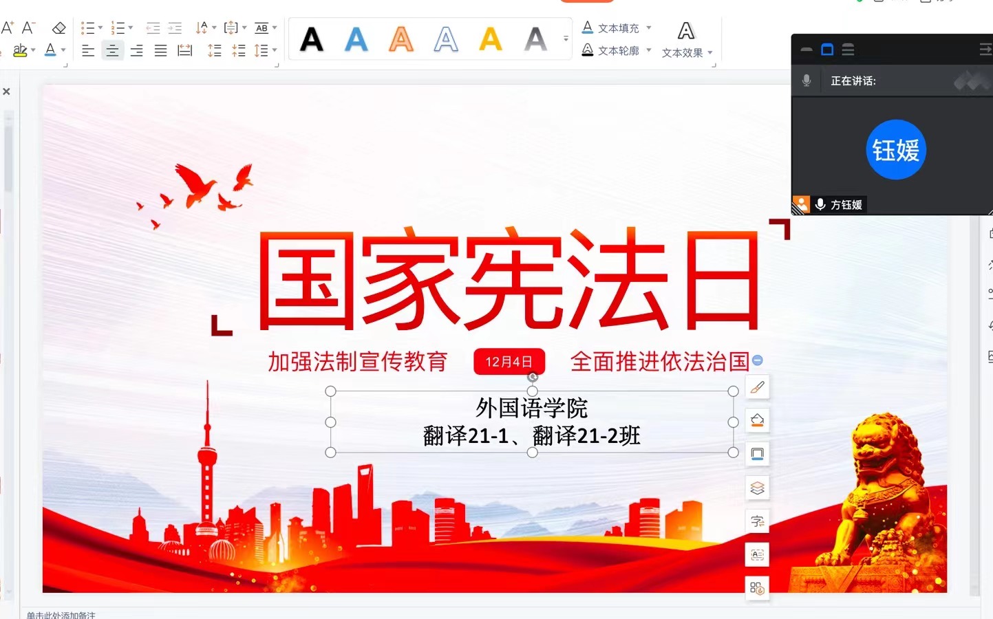 外国语学院开展“学宪法、守宪法”主题班会