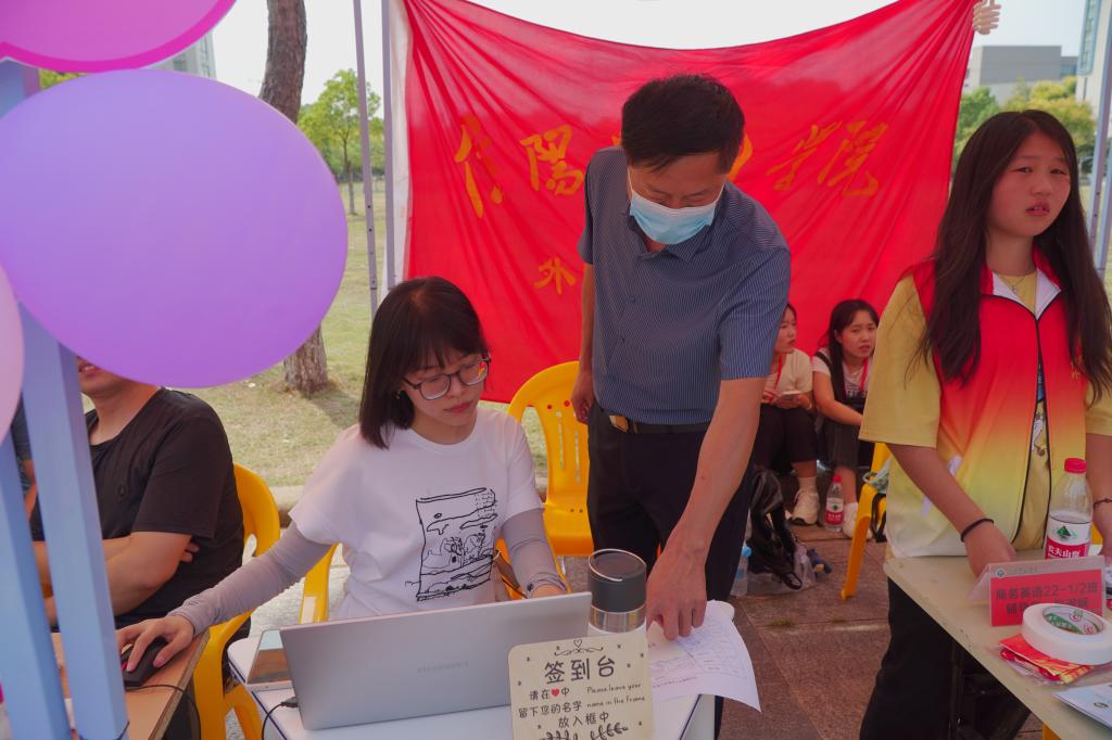 老师们和志愿者们早早搭好迎新棚,布置好了迎新现场。学院为新同学定制了水杯,制作了充满仪式感的签到板,并为家庭困难学生设立了“绿色通道”;辅导员老师们帮助新同学们在报道点登记,和他们交流入校感想,并记录下这有意义的瞬间;院拉拉队的学姐们也用激情昂扬的演出向小萌新们的到来表示欢迎,仍在途中的新同学通过抖音直播远程观看了现场的热火朝天。