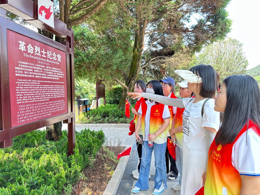 下午,成员们来到了鄂豫皖苏区首府革命博物馆和烈士陵园进行了参观调研。展厅里的一张张照片、一首首诗歌、一个个英雄故事,无不向大家展示着革命先烈们为振兴中华的矢志不渝和坚定信仰、不畏牺牲的崇高精神;参观完毕后,小分队成员们结合所学专业,对馆内指示牌中英文翻译信息进行采集。在带队老师的指导下,大家深入了解文化背景,收集馆内资料,返校后将就馆内指示牌汉英翻译准确性等问题进行讨论。