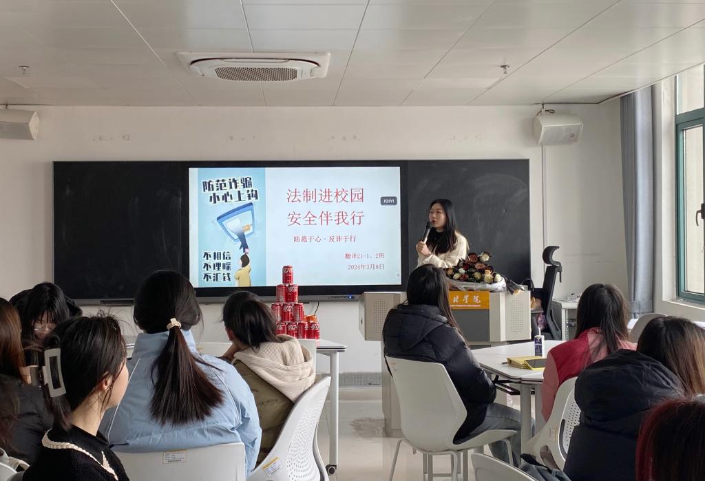 为提高同学们的安全防范意识,增强自我保护能力,进一步维护自身合法权益,3月8至11日,外国语学院各班辅导员组织召开了反诈骗宣传教育主题班会。